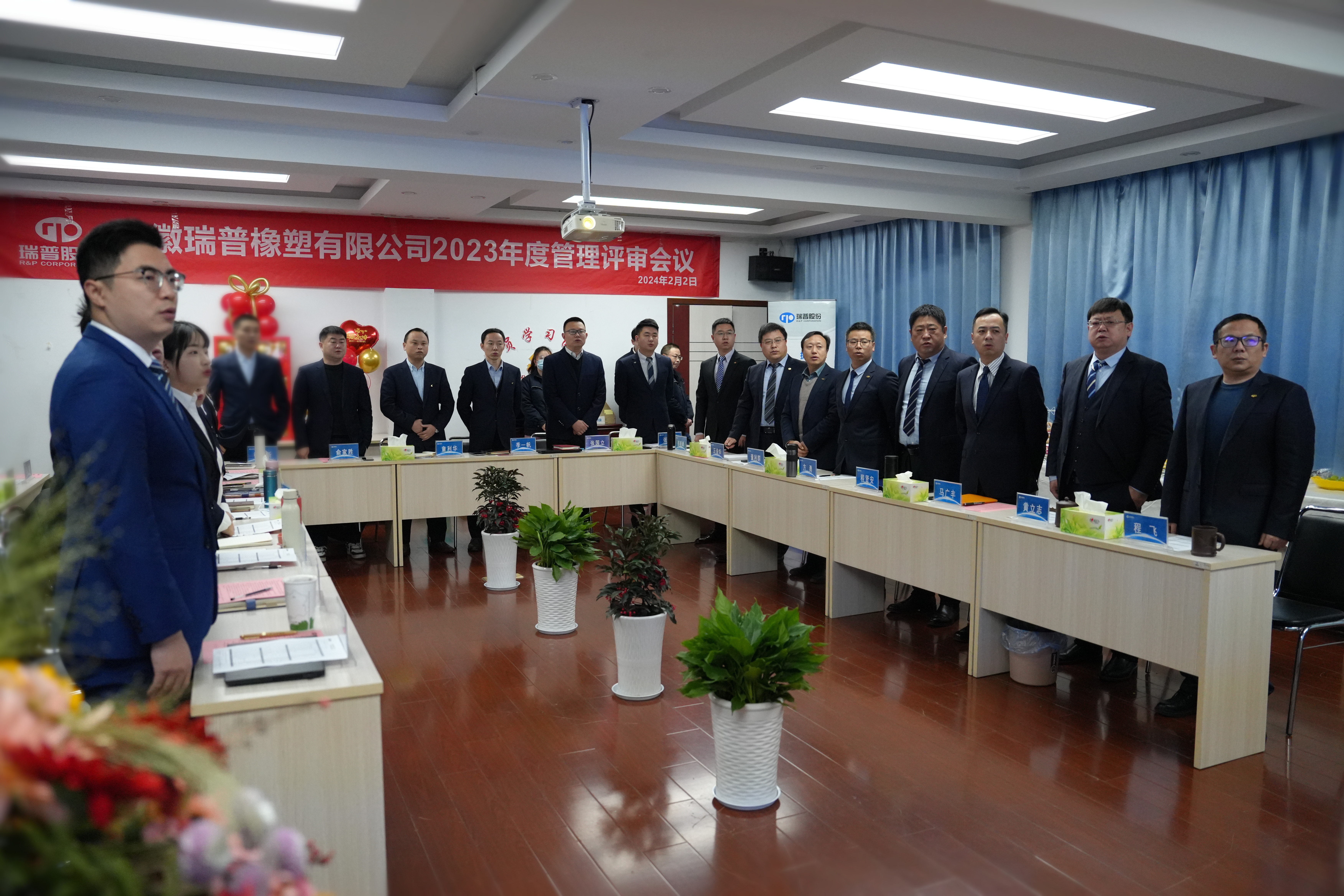 安徽瑞普橡塑有限公司于2024年2月2日上午08點00分在公司三樓會議室召開2023年度管理評審會議。會議由質(zhì)量總監(jiān)主導,質(zhì)量經(jīng)理主持,公司高管及各職能部門、子公司負責人共30余人參加會議。